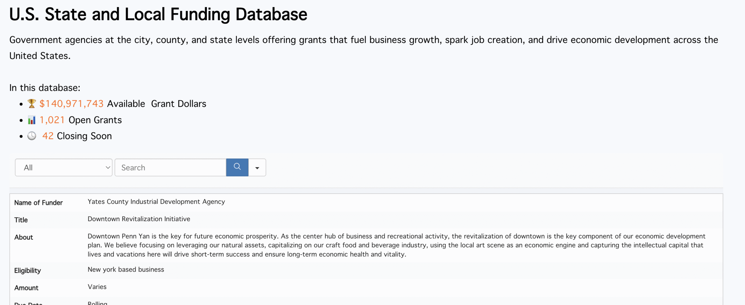 The new search tools are designed to match the way entrepreneurs actually think about funding. You can filter by: